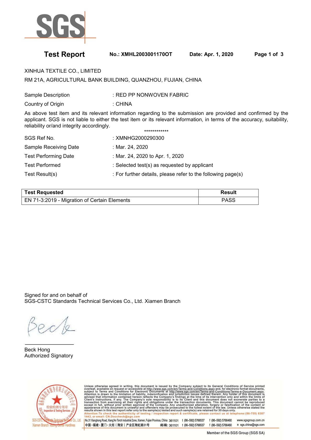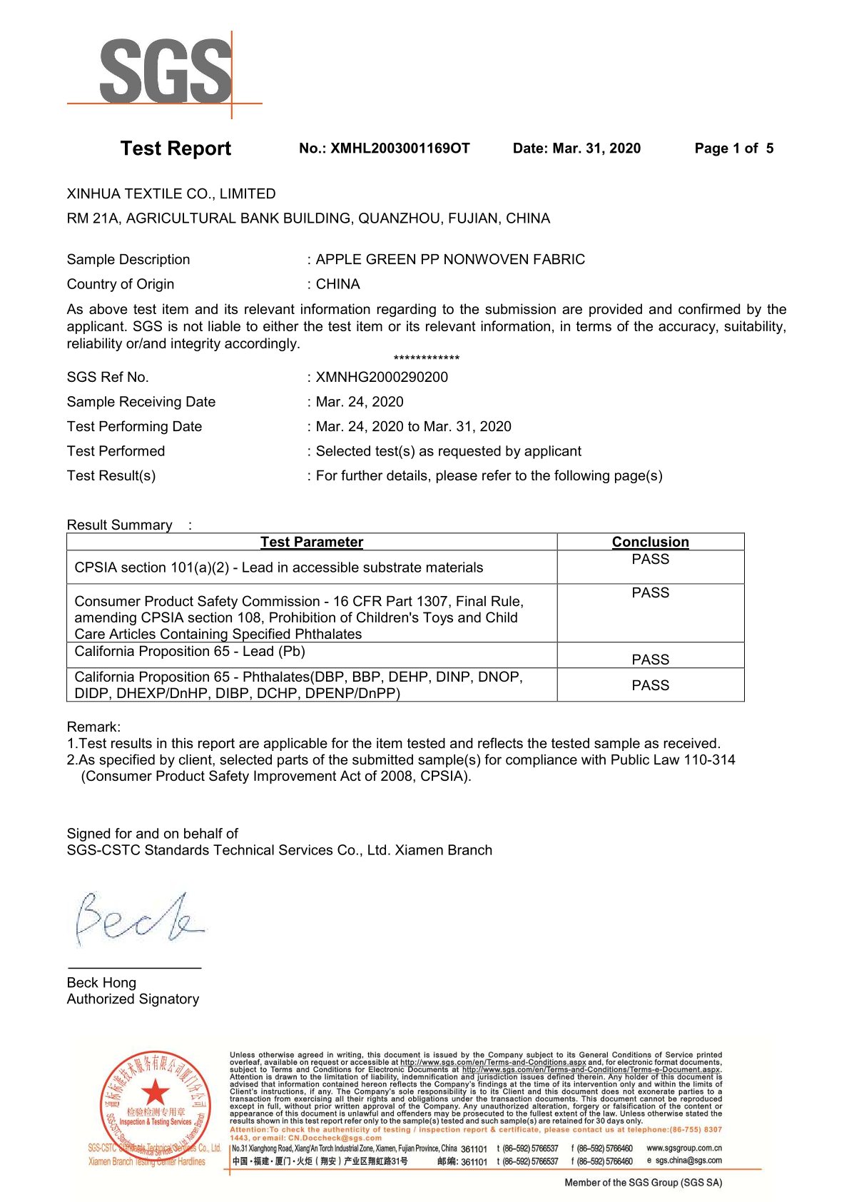 تنتج شركة شينهوا للنسيج أقمشة غير منسوجة بأوزان وأحجام وأطوال لفات مختلفة حسب الطلب، وبألوان متنوعة. جميع هذه الأقمشة غير المنسوجة مصنوعة من مواد صديقة للبيئة، وقابلة لإعادة الاستخدام وغير سامة.
