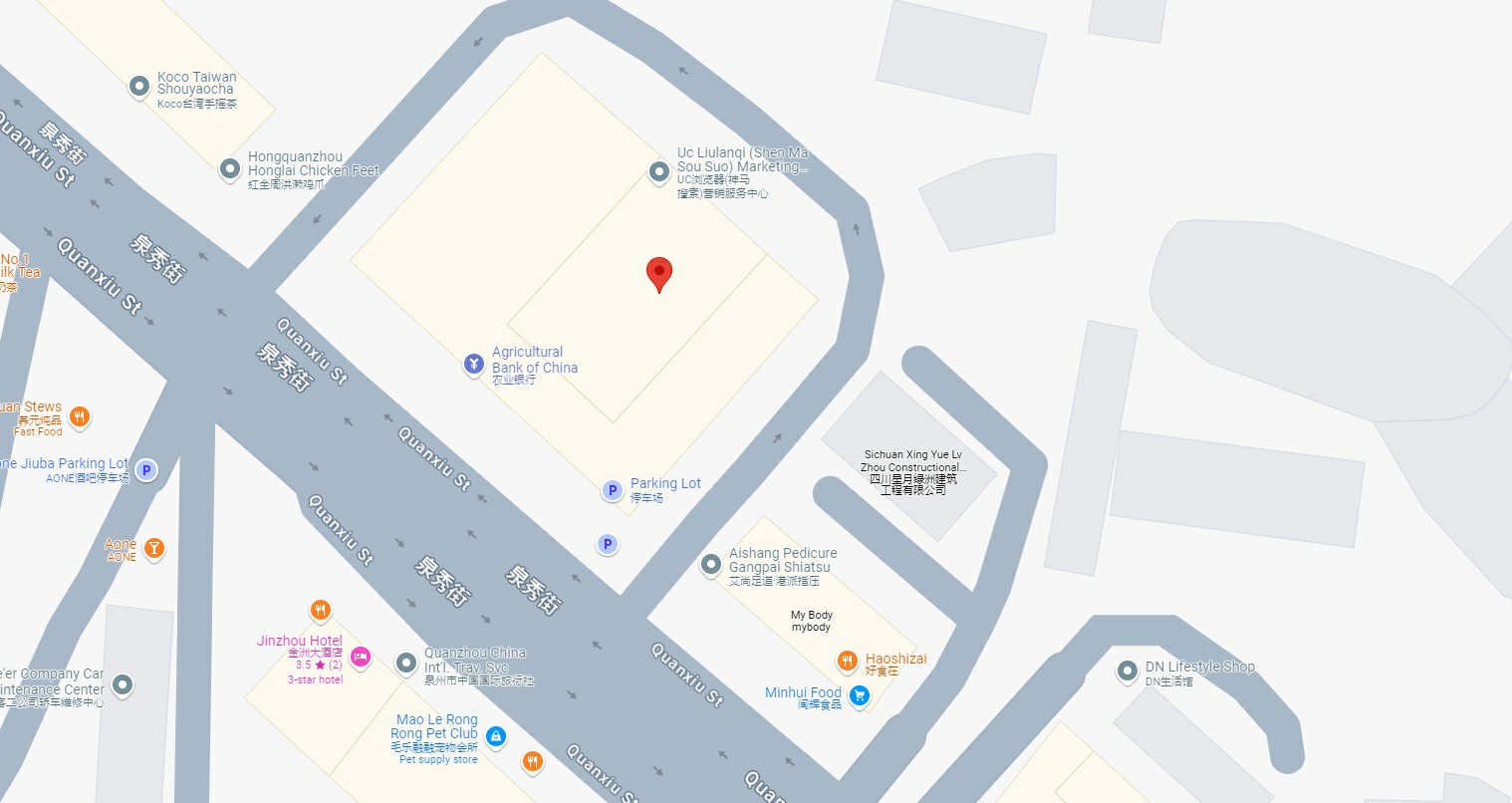 يضيف : Room 21A, Agricultural Bank Building, Quanzhou, Fujian, China. 362000