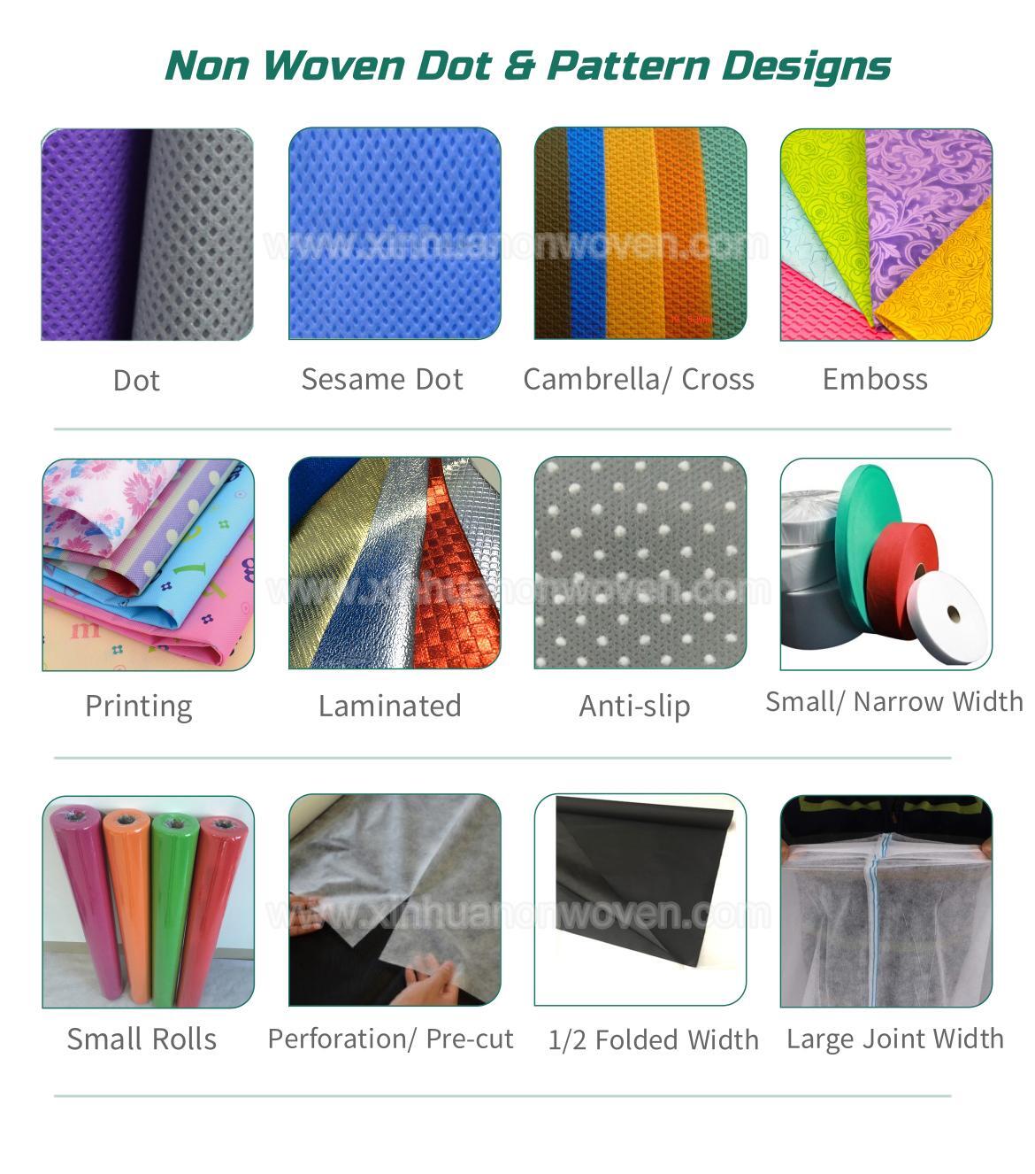 في الوقت الحالي، يمكن لمصنعنا، XINHUA TEXTILE، توريد وإنتاجقماش غير منسوج مغلف بالبولي بروبيلينفي نقاط وأنماط مختلفة.