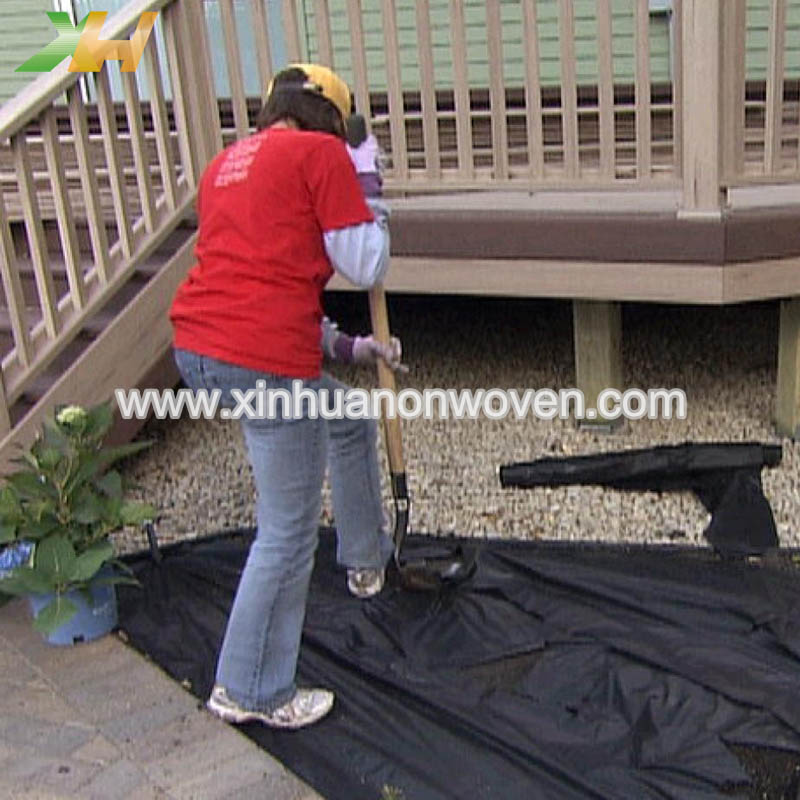 قماش رخيص الثمن أسود اللون صديق للبيئة مصنوع من مادة البولي بروبيلين غير المنسوجة لمنع الأعشاب الضارة