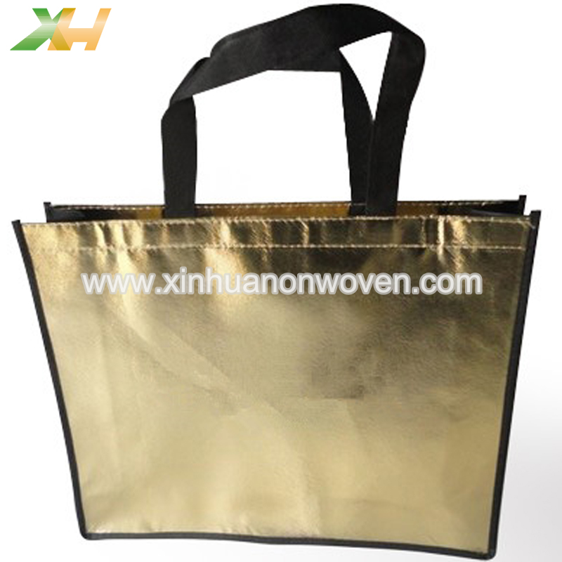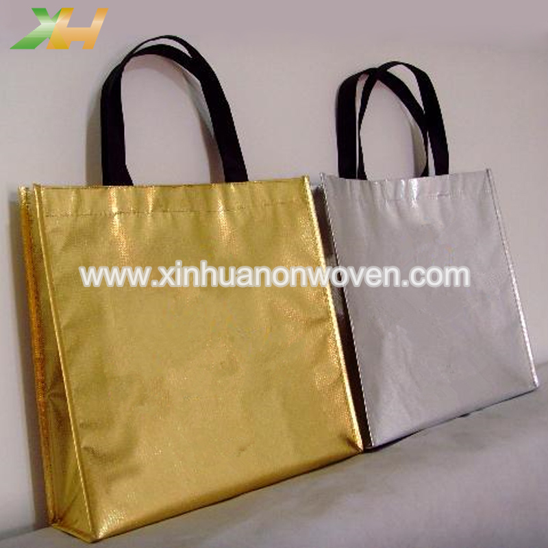 أكياس معدنية غير منسوجة مخصصة يُستخدم غشاء مصنوع من مواد مثل البولي بروبيلين كطبقة عازلة للماء. بعد ذوبانه في درجة حرارة عالية، يُطلى على السطح غير المنسوج لتشكيل بنية مركبة. هذا لا يحافظ فقط على متانة القماش غير المنسوج العالية، بل يُضفي عليه أيضًا خصائص مقاومة للماء. تُستخدم هذه الأكياس على نطاق واسع في الحقائب القابلة لإعادة الاستخدام، وحقائب التسوق، وتغليف الهدايا، وتغليف النبيذ، وهي تُغني عن المواد التقليدية، مما يُقلل التكلفة ويُحسّن الأداء.