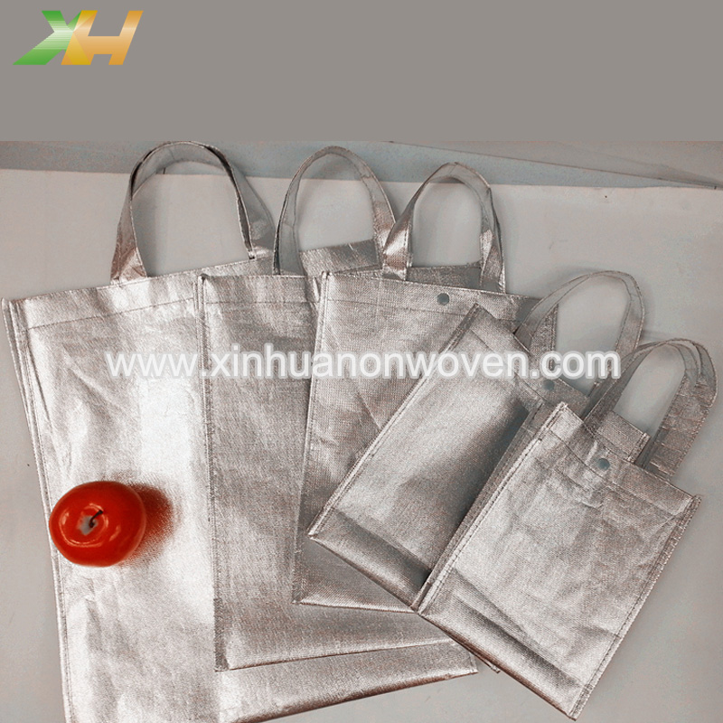 أكياس معدنية غير منسوجةتُصنع هذه المنتجات بتقنية التصفيح، حيث يُغطى سطح القماش غير المنسوج بغشاء، ويُغطى الغشاء البلاستيكي بالتشريب والطلاء. وهي طبقة من الغشاء البلاستيكي تعتمد على القماش غير المنسوج التقليدي، مما يزيد من خصائصه المقاومة للماء والرطوبة، ويمنحه مظهرًا ناعمًا ولامعًا.