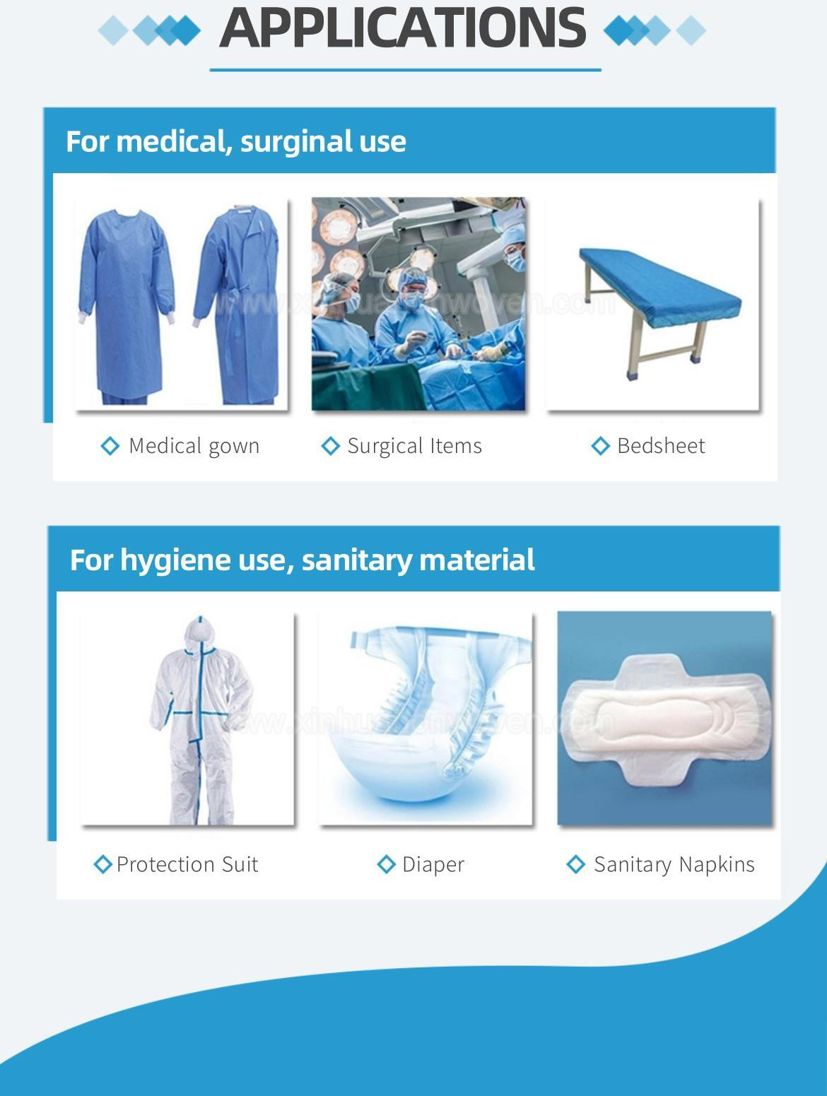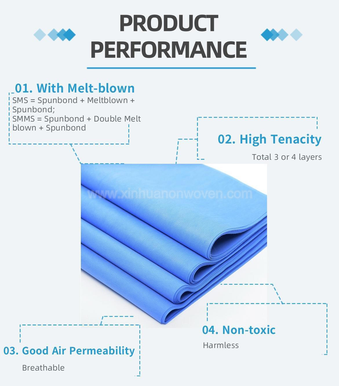في الوقت الحالي، يمكن لمصنعنا، XINHUA TEXTILE، توريد وإنتاج قماش غير منسوج من نوع sms بأوزان وألوان مختلفة.