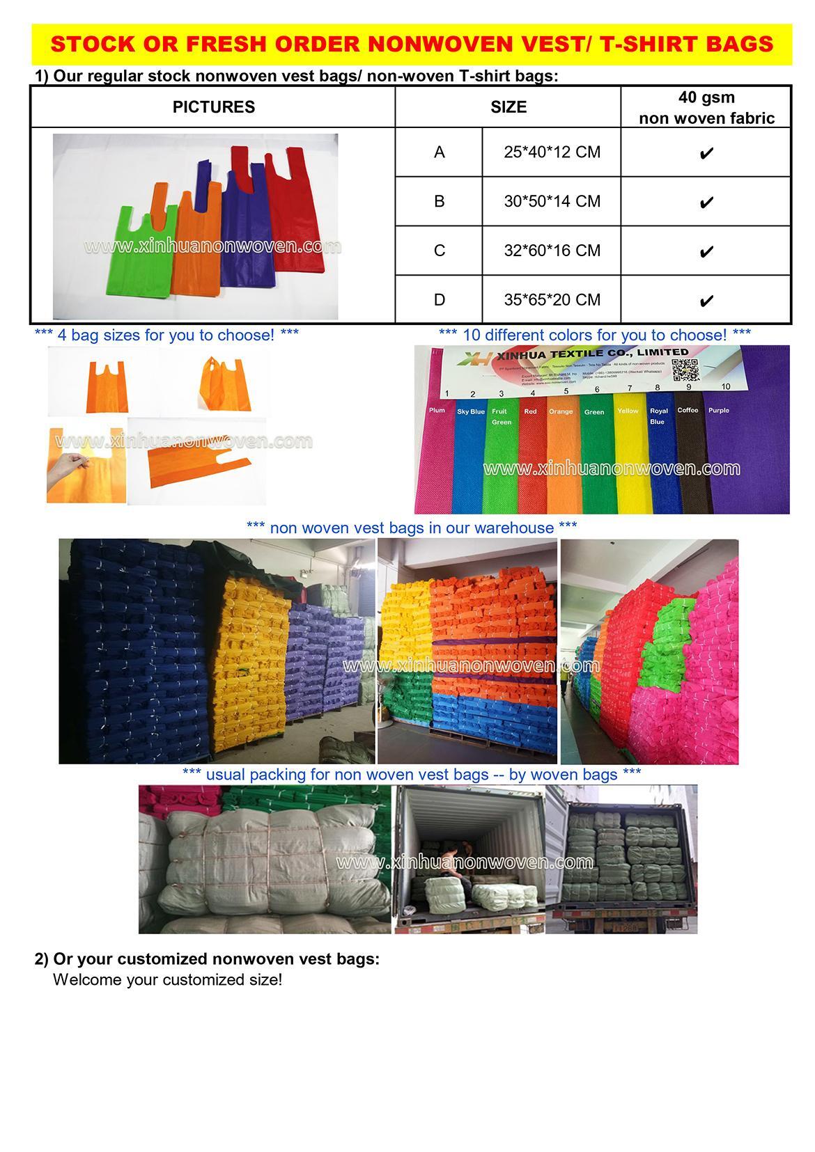 | ملكنا مخزون عادي أكياس السترات غير المنسوجة / أكياس القمصان غير المنسوجة: | |